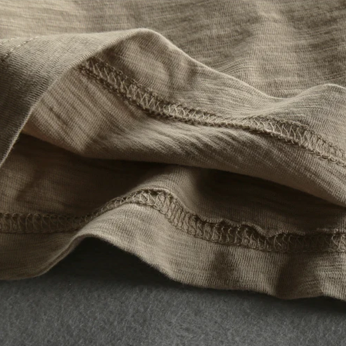 Tu camiseta básica, pero con un toque sutil. Hecha con una mezcla de algodón flameado suave y ligera, presenta un llamativo detalle de costura que recorre el pecho, rematado con hilo rojo a la vista que le da a la prenda un aire discreto y deconstruido.