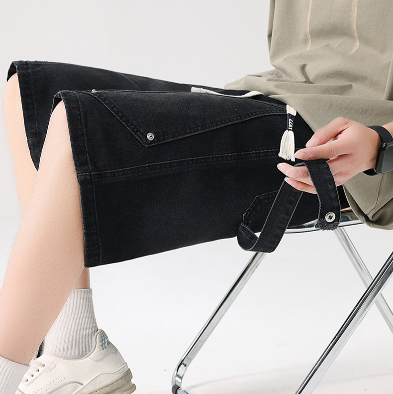 Confeccionados en denim de algodón premium con lavado claro, estos shorts aportan energía urbana con un look suave y refinado. Su cintura con cordón ajustable y detalles de correas funcionales combinan un diseño atrevido con líneas limpias, lo que los convierte en la opción perfecta para los veranos en la ciudad.