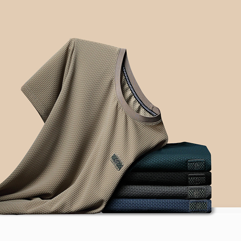 La camiseta Velaro está confeccionada con un refinado punto gofrado que ofrece estructura, ventilación y una sensación excepcionalmente suave. Su corte es holgado pero limpio, con un escote pronunciado y una insignia técnica de goma en el dobladillo que le da un sutil toque deportivo.